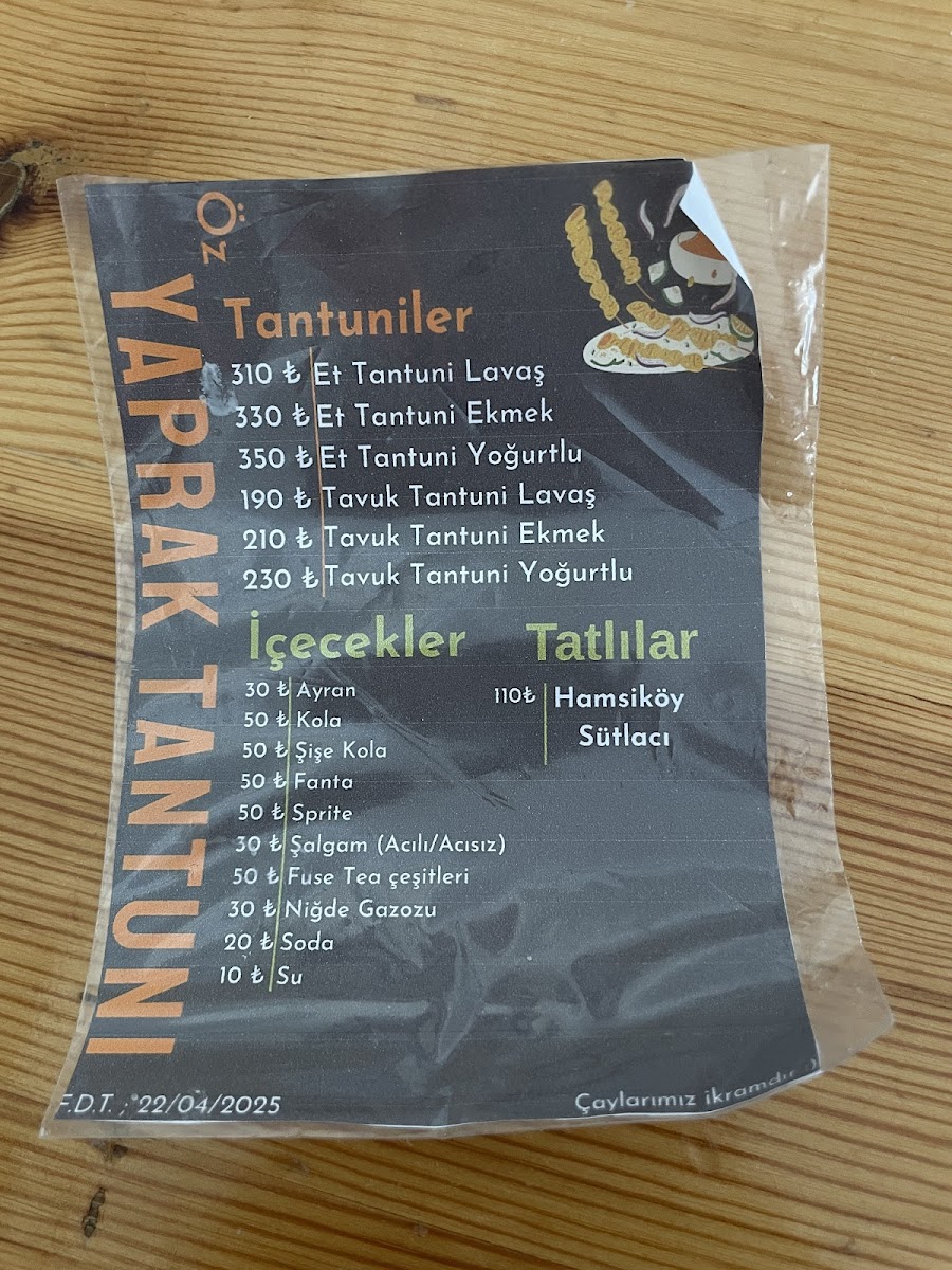 The menu at Mersinli Nihat Usta Yaprak Tantuni offers a variety of delicious options centered around the classic Turkish dish, Tantuni. The Tavuk Tantuni options include Tavuk Tantuni Dürüm and Tavuk Tantuni Ekmek, alongside the refreshing Yoğurtlu Tavuk Tantuni Dürüm, which incorporates yogurt for added creaminess. For those who prefer beef, the Et Tantuni menu features the Et Tantuni Dürüm and Et Tantuni Ekmek, with the option of a Yoğurtlu Et Tantuni Dürüm for a tangy twist. In addition to the tantalizing tantuni wraps and sandwiches, the drink selection includes ÖzerHisar Ayran (245 ml), as well as regular Ayran in 200 ml and 290 ml sizes, and a selection of Coca-Cola and Coca-Cola Şekersiz (330 ml). To finish off the meal, customers can enjoy a traditional Turkish dessert with the Trabzon Hamsiköy Sütlacı, a sweet and creamy rice pudding. The menu’s variety provides something for everyone, combining hearty flavors with refreshing drinks and a sweet touch to end the meal.